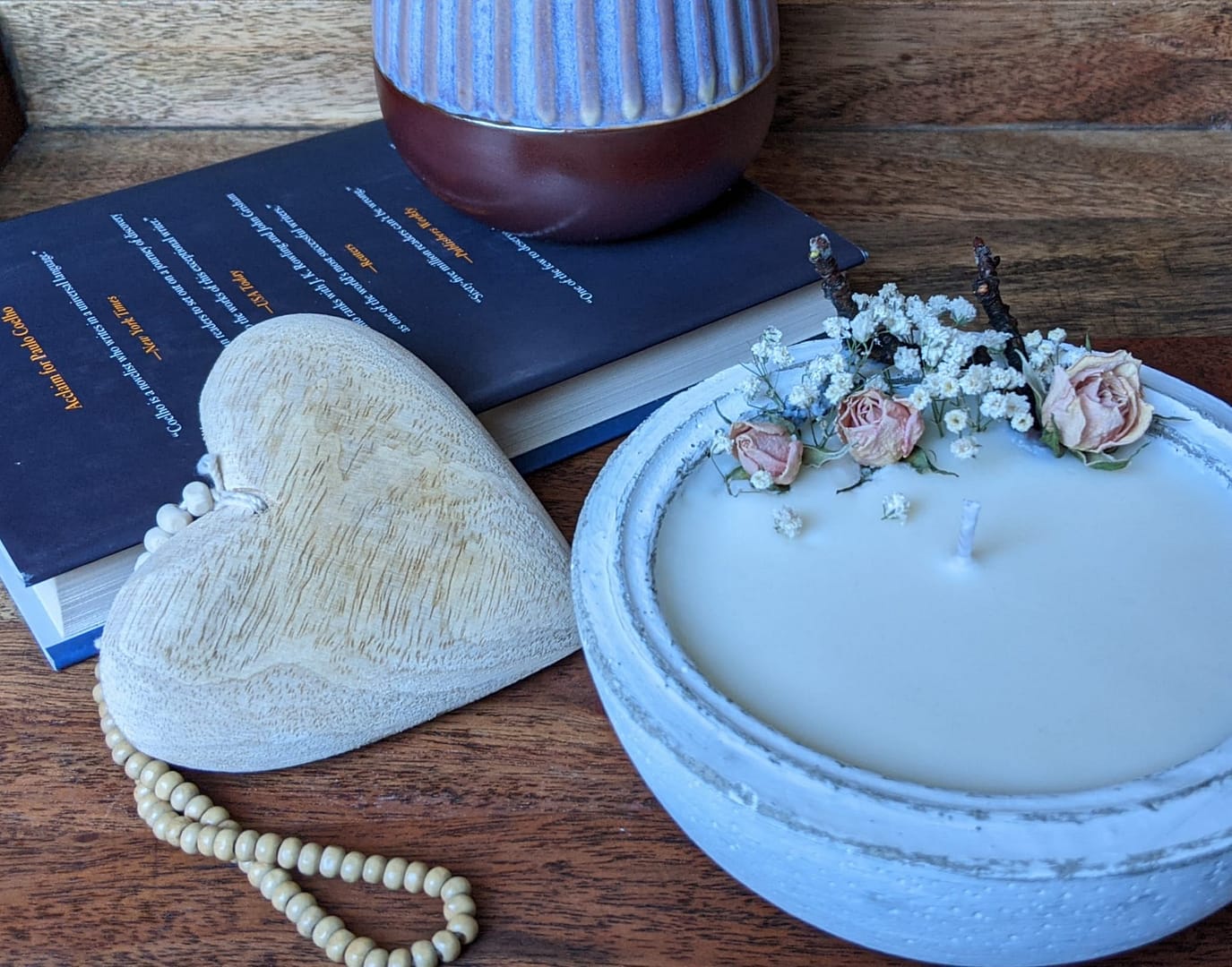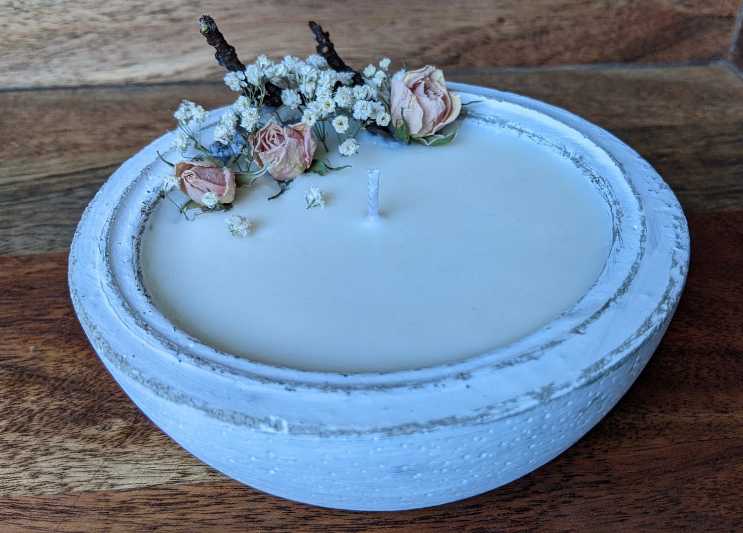 Our Cement Bowl Candles are the epitome of elegance and charm for your space. Crafted with care, these candles are housed in stunning cement bowls, each uniquely decorated to add a touch of sophistication to any room.