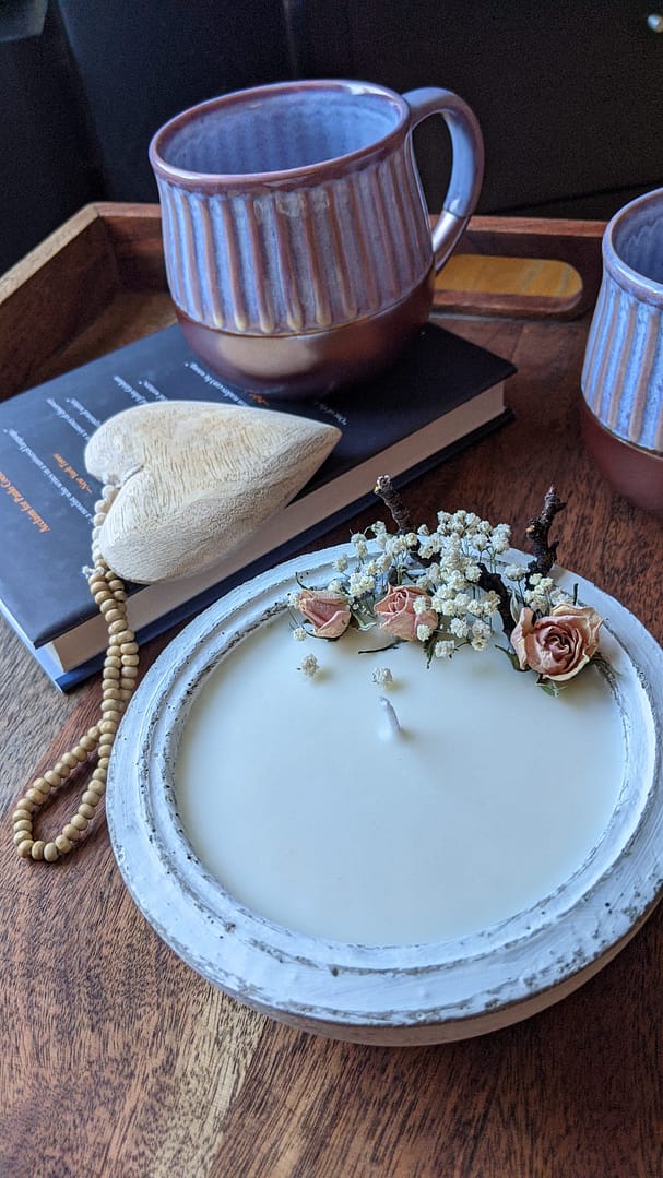 Measuring 14 cm in diameter and 5.5 cm in height, our candles boast a generous size, holding approximately 16 oz of premium soy wax. Choose from an array of enchanting fragrances to suit your mood and ambiance, from soothing lavender to invigorating citrus.