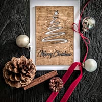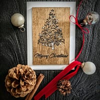 Celebrate the season with beautiful handmade Christmas cards featuring a unique laser-cut 3mm wood appliqué. Each 5×7 card is carefully crafted to bring a touch of natural elegance and warmth to your holiday greetings.