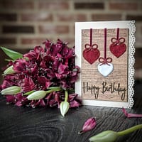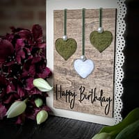 Celebrate birthdays with a card that feels as special as the moment itself. This handcrafted 5×7 birthday card features elegant heart details, each carefully filled with natural wool, adding rich texture and a soft, organic touch you can both see and feel.