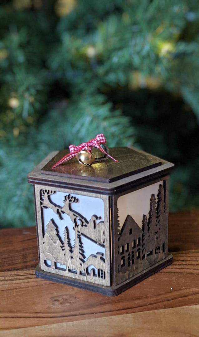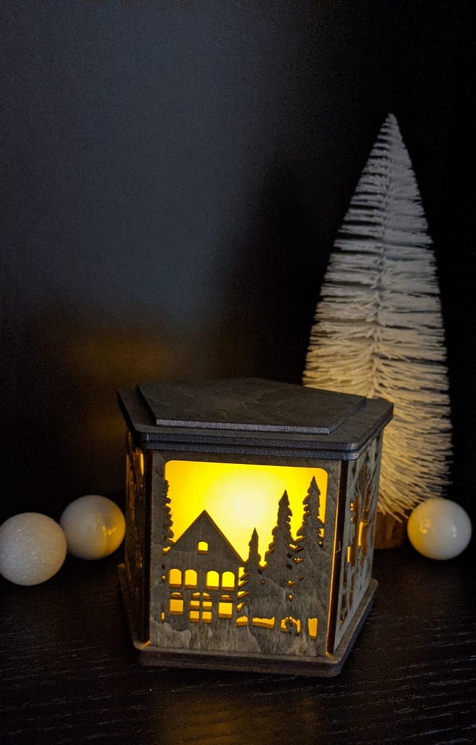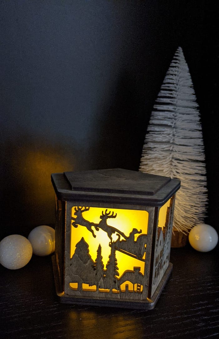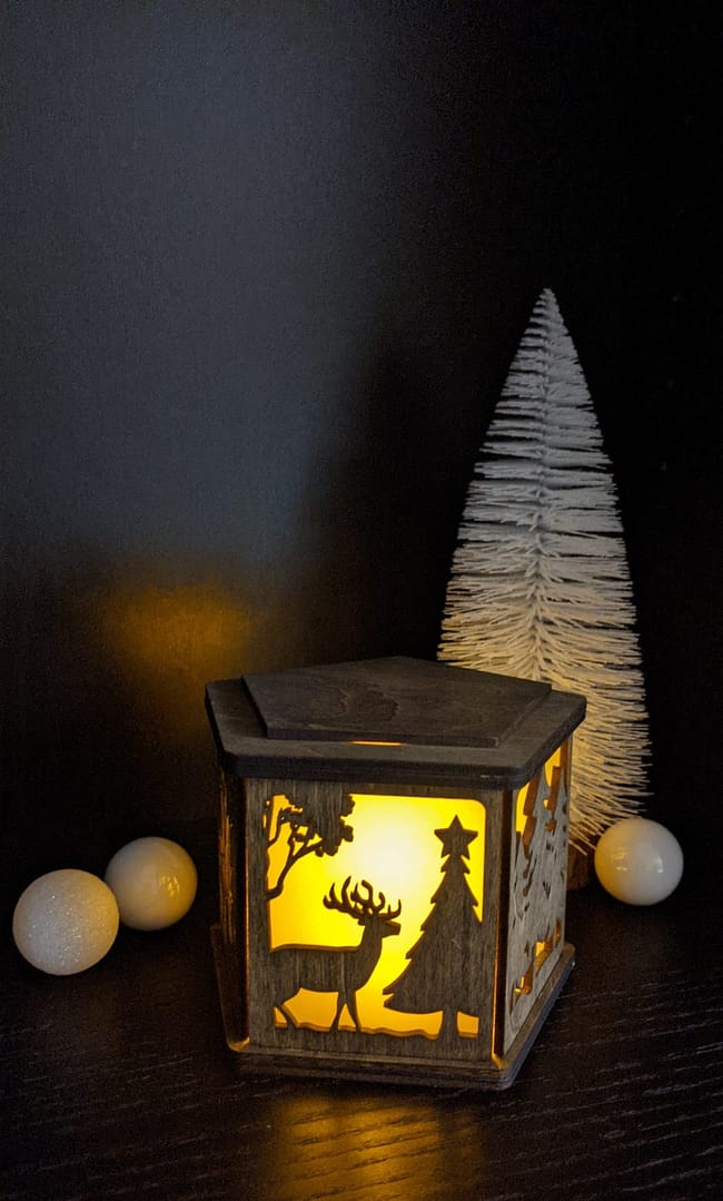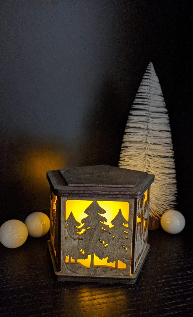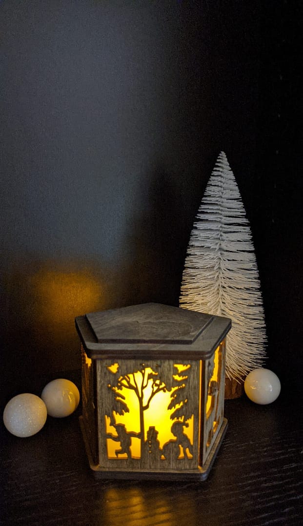 Introducing our Wooden Pentagon Lanterns: crafted from 3mm wood with battery-powered teal lights, they bring warmth and style to any space. Their unique pentagon shape adds a modern touch, while personalized engraving options make them a truly special addition to your décor. Illuminate your space with charm and elegance.